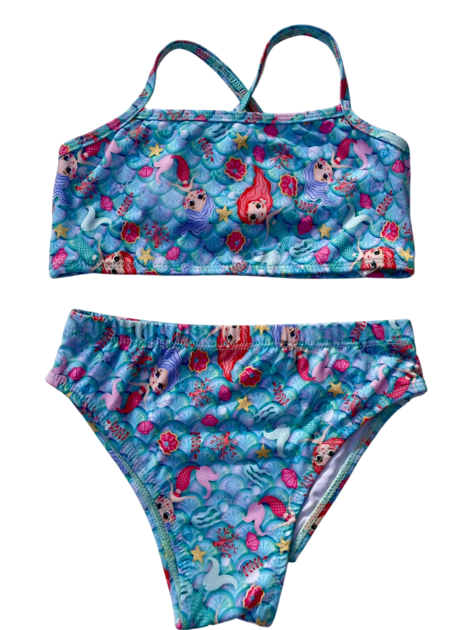 O conjunto é composto por um Top com fechamento de amarrar  e calcinha mais alta na cintura estilo sunquini.