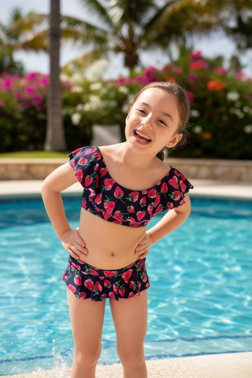 Com estampa divertida e babados delicados, é ideal para momentos de diversão na praia ou na piscina.