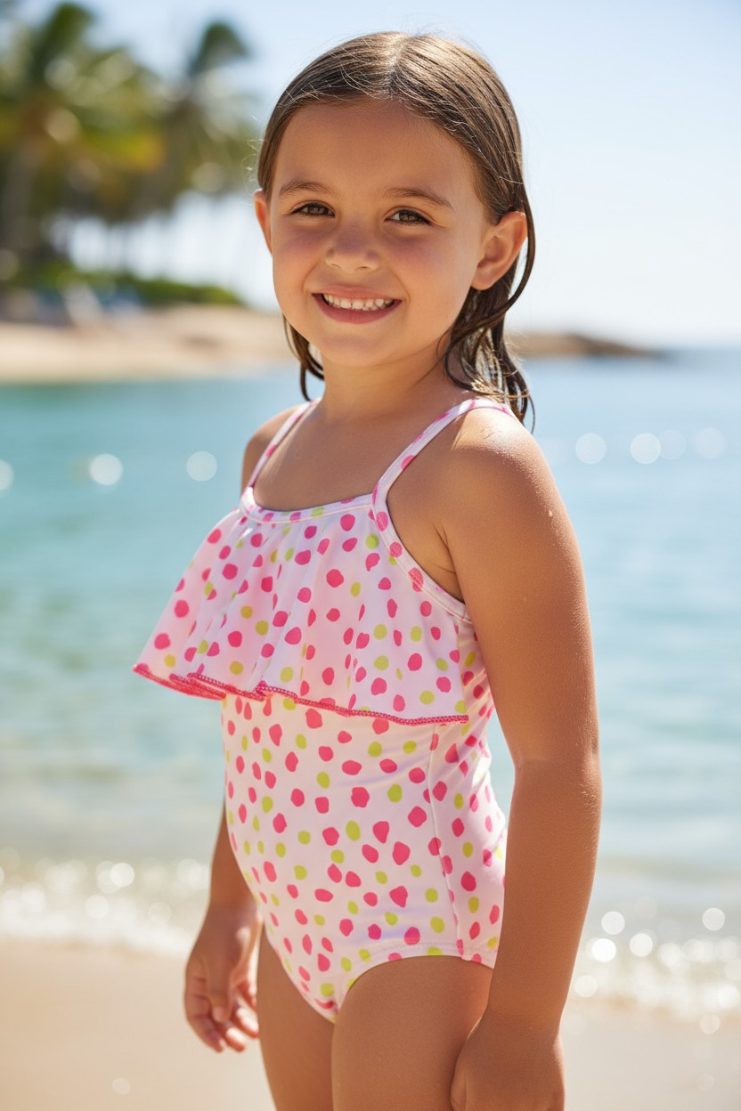 O maiô infantil babado bolinhas da Bella Vie é ideal para as pequenas que amam brincar, correr e se divertir na praia ou na piscina.